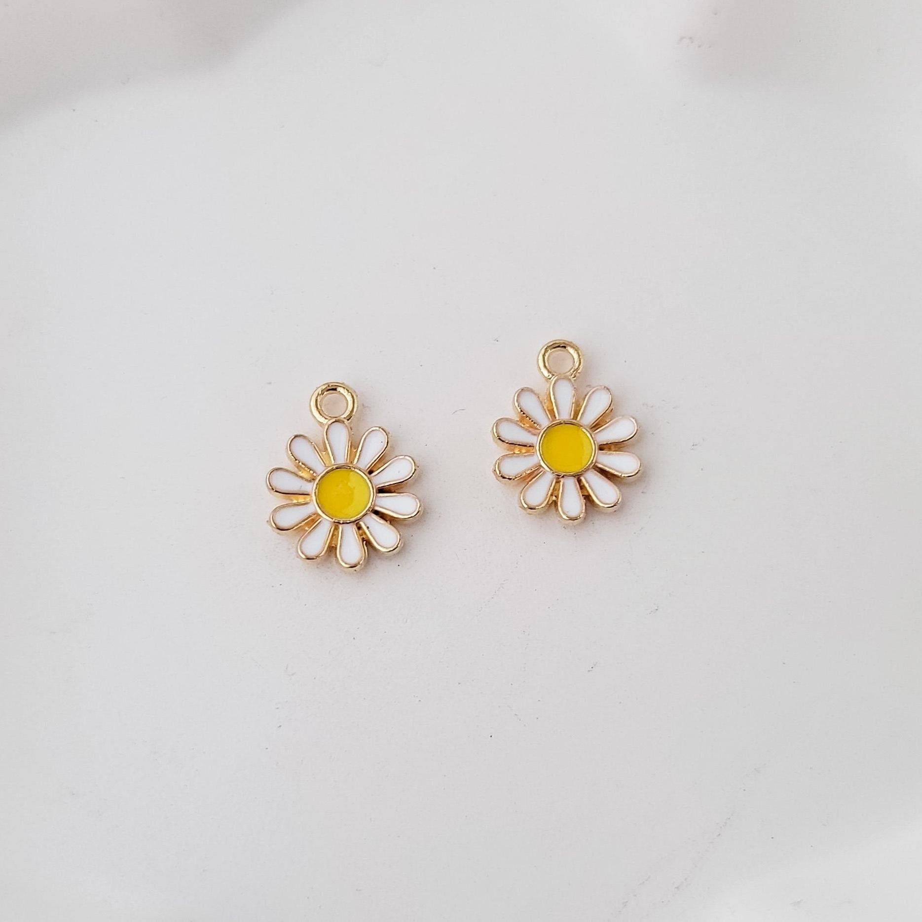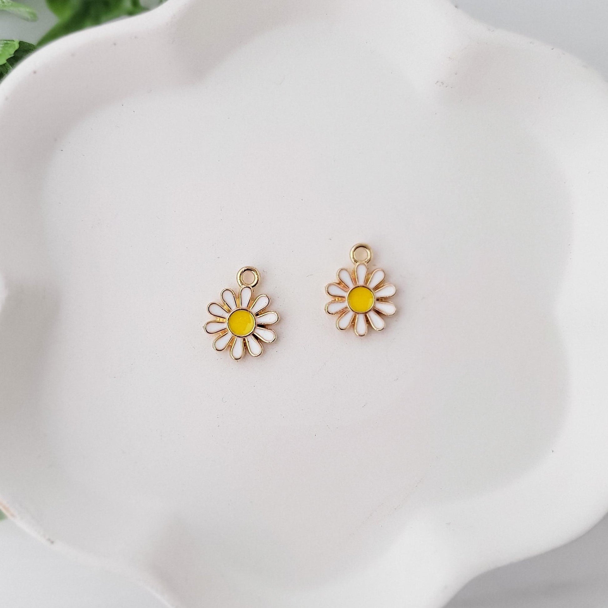Petite White/Yellow Daisy Gold-Plated Enamel Charms, 10 Pieces