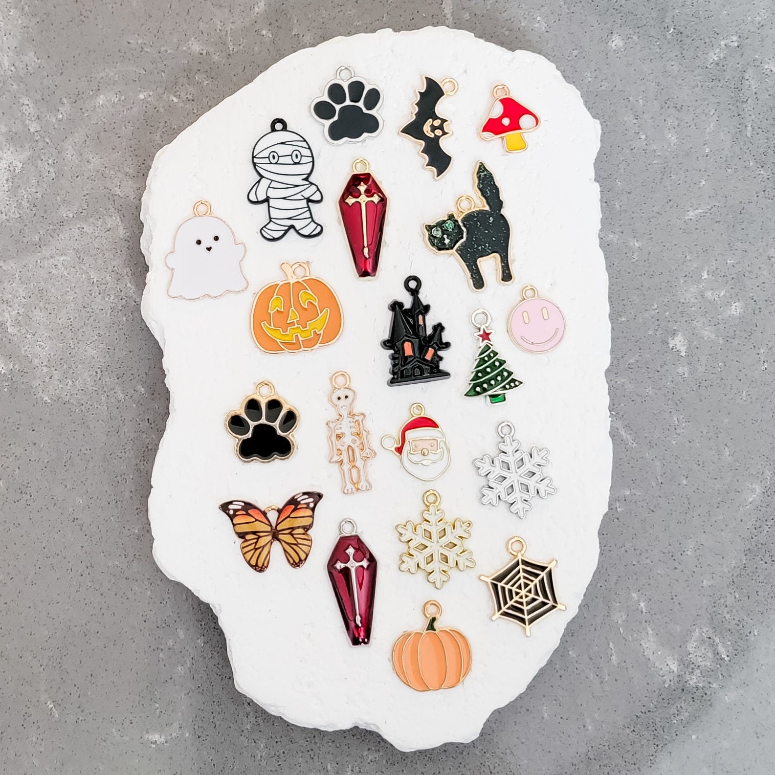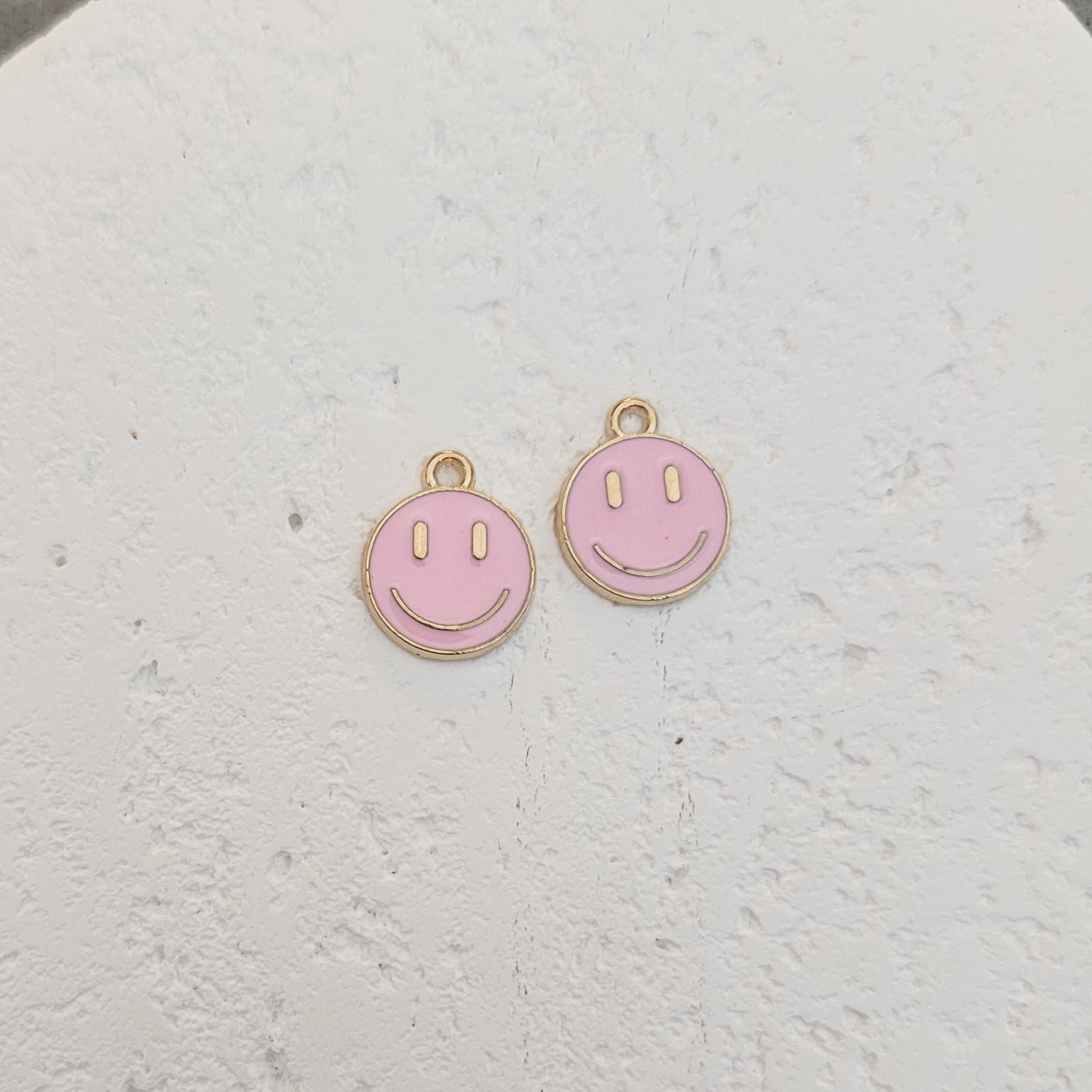 Pink Happy Face Enamel and Alloy Pendant Charm, 10 Pieces