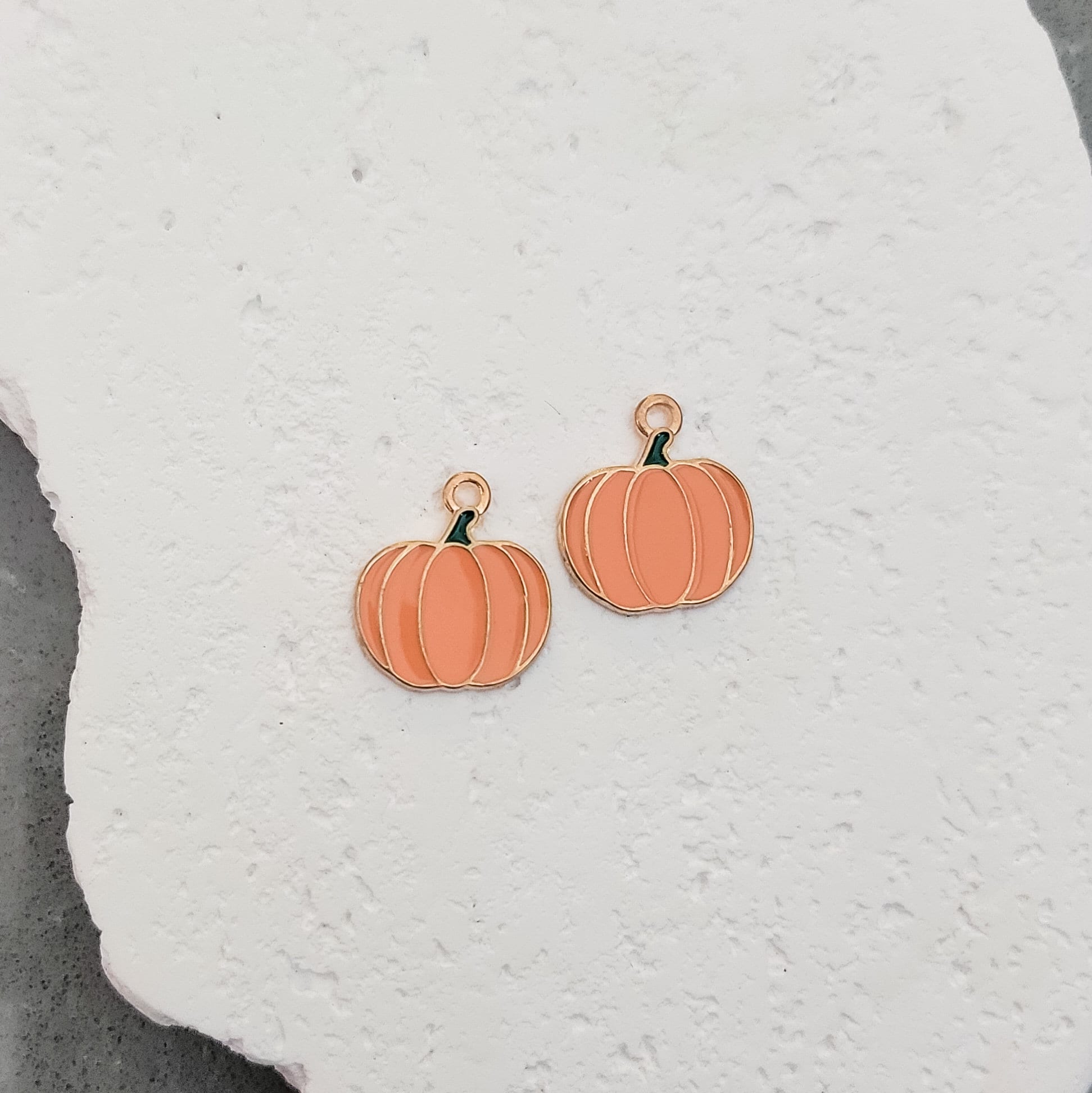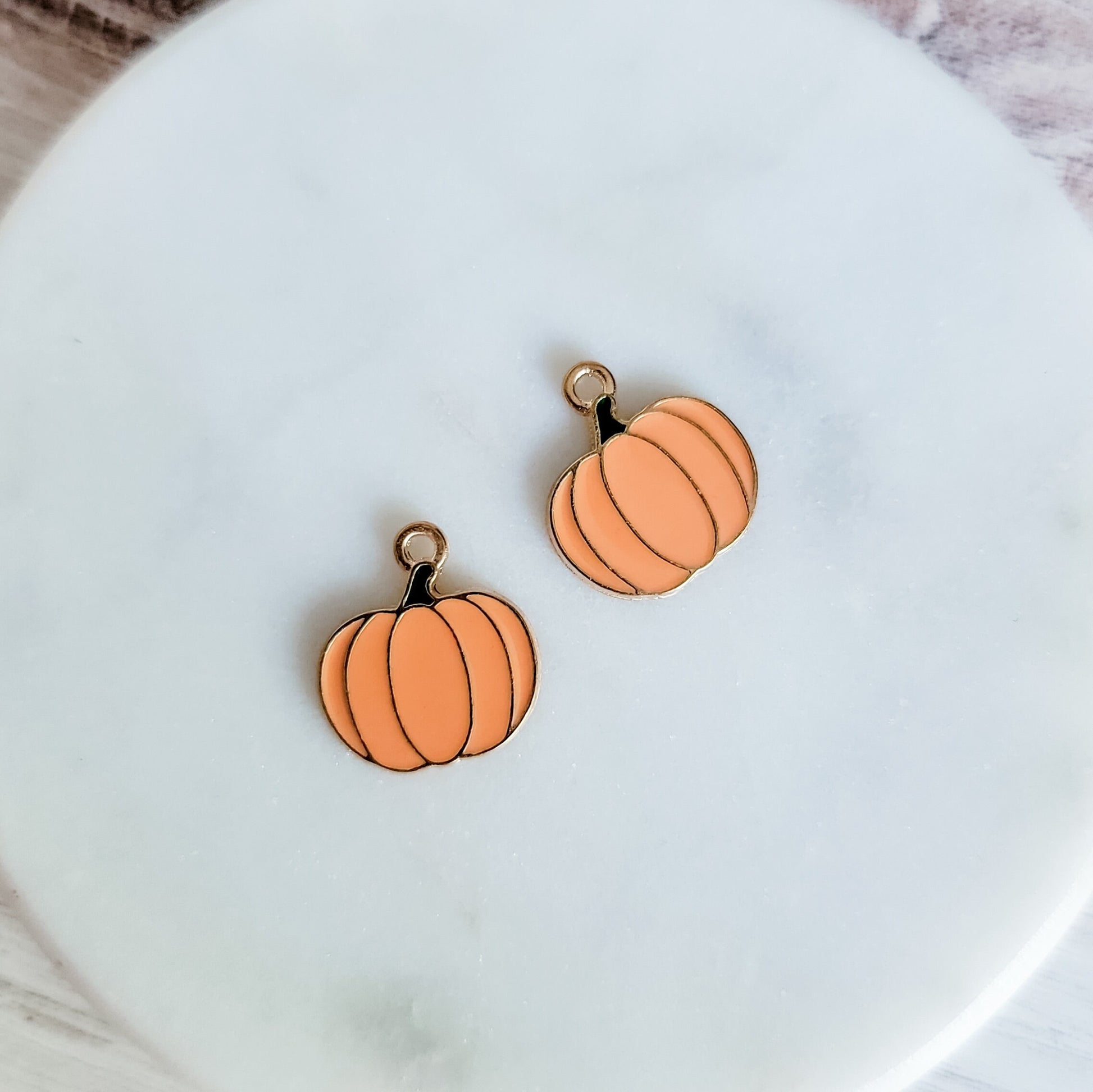 Pumpkin (Orange and Gold) Enamel and Alloy Pendant Charm, 10 Pieces