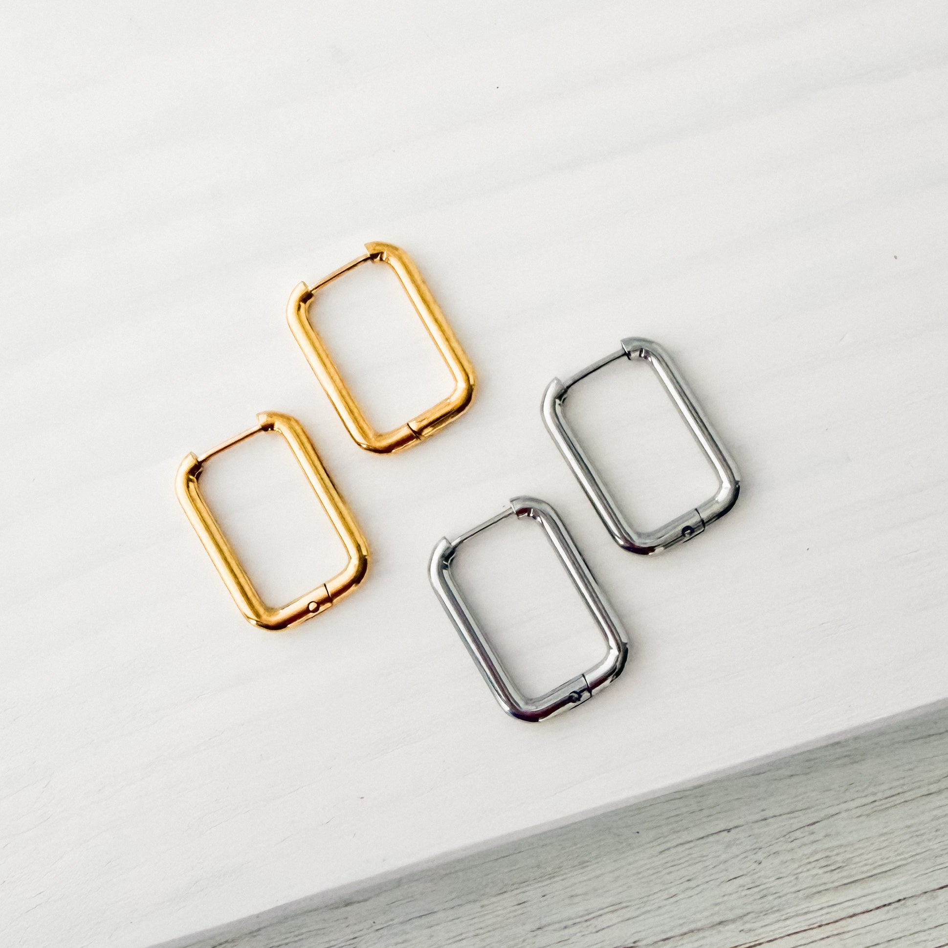 Rectangle Stainless Steel Huggie Without Loop (Choose Silver or Gold), 10 Pieces, Hoop #11