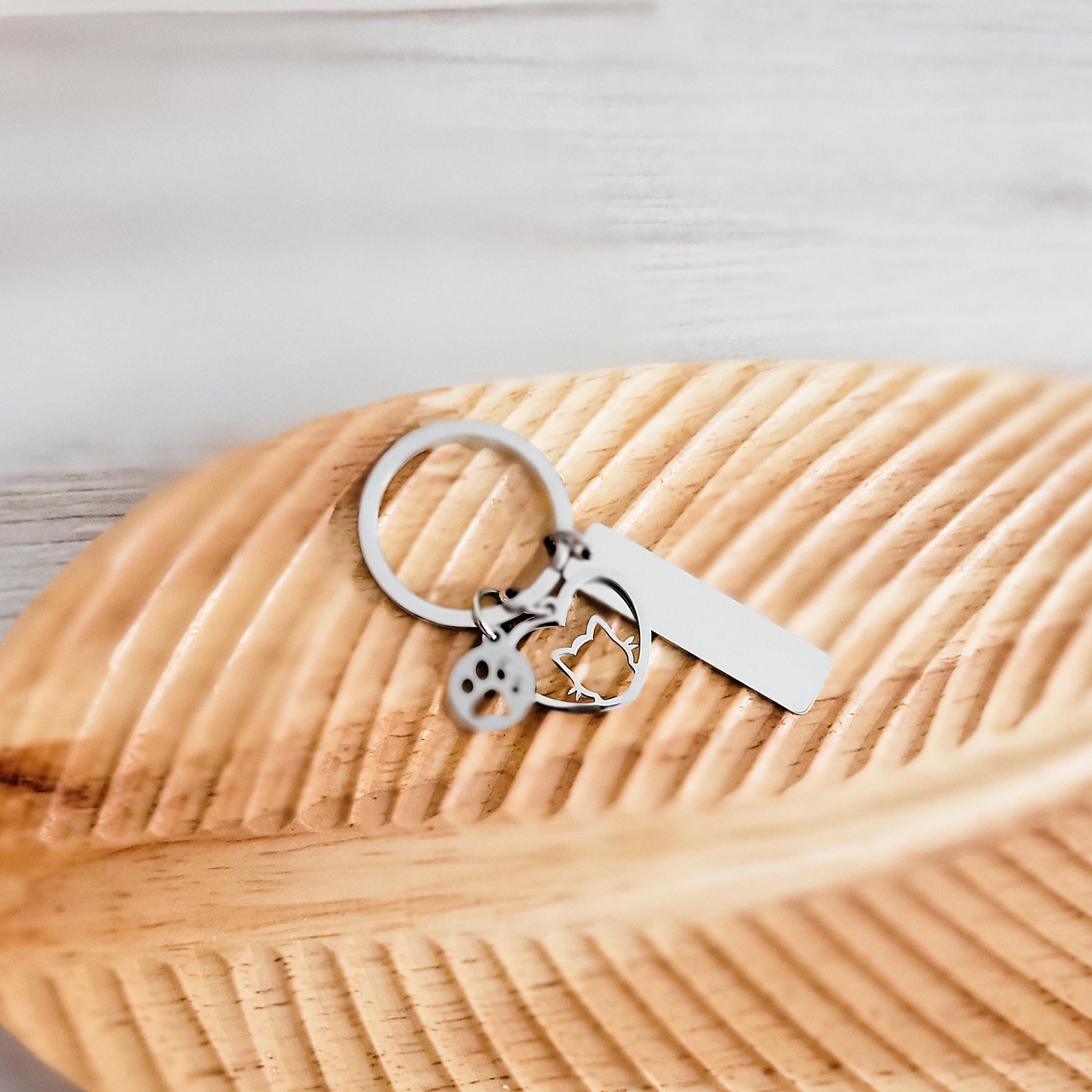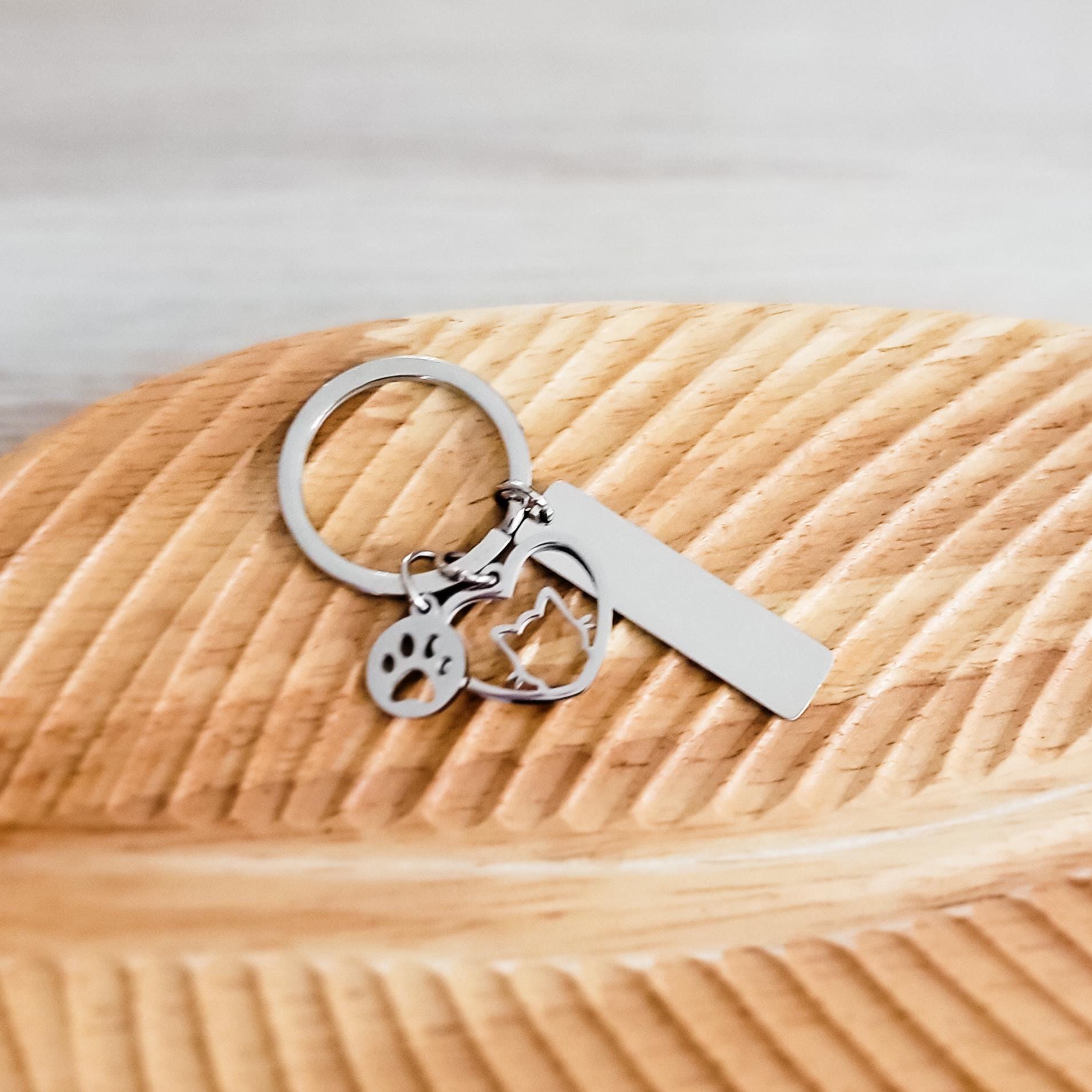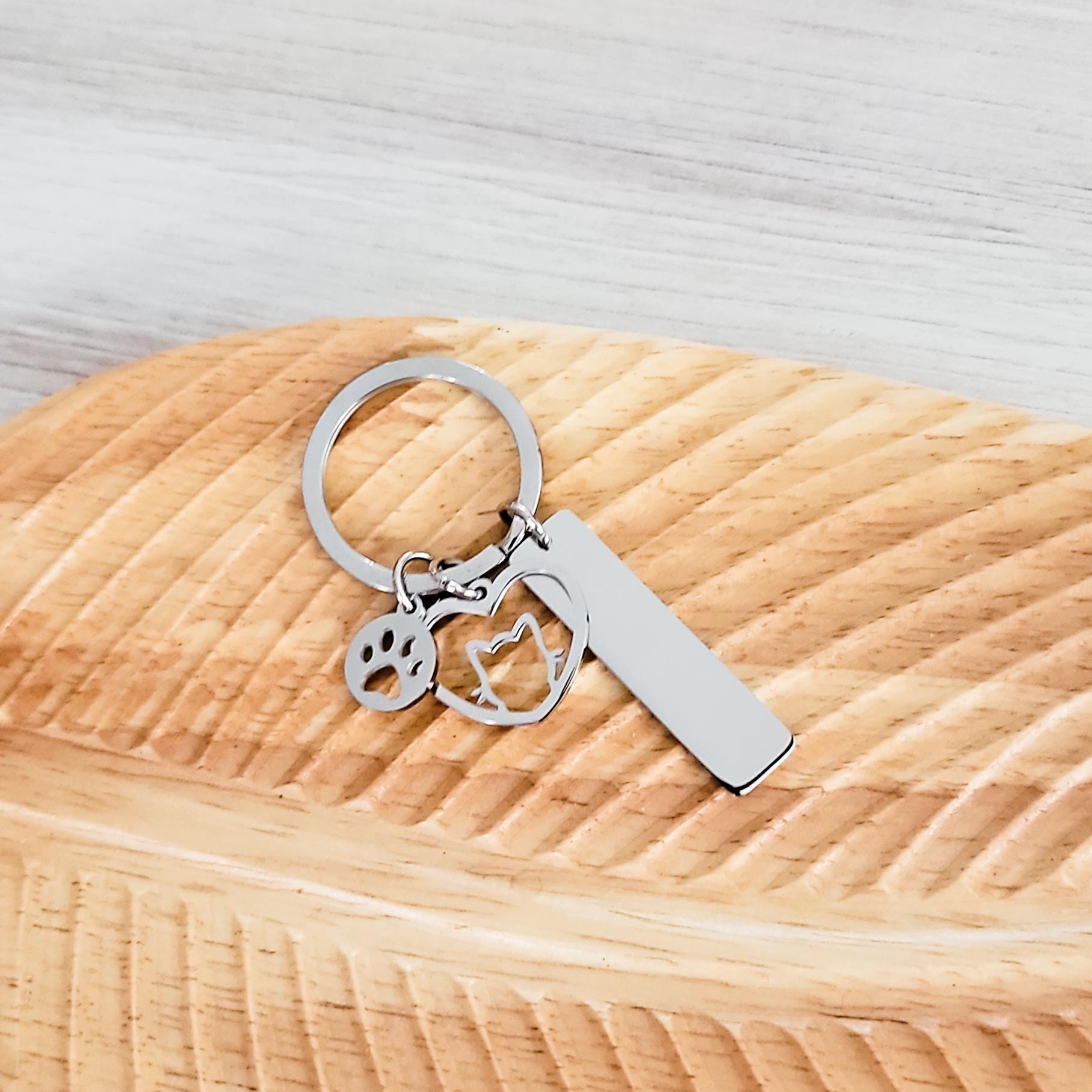 • Size: 40mm rectangle, 20mm cat heart, 14mm paw print, 30mm split key ring