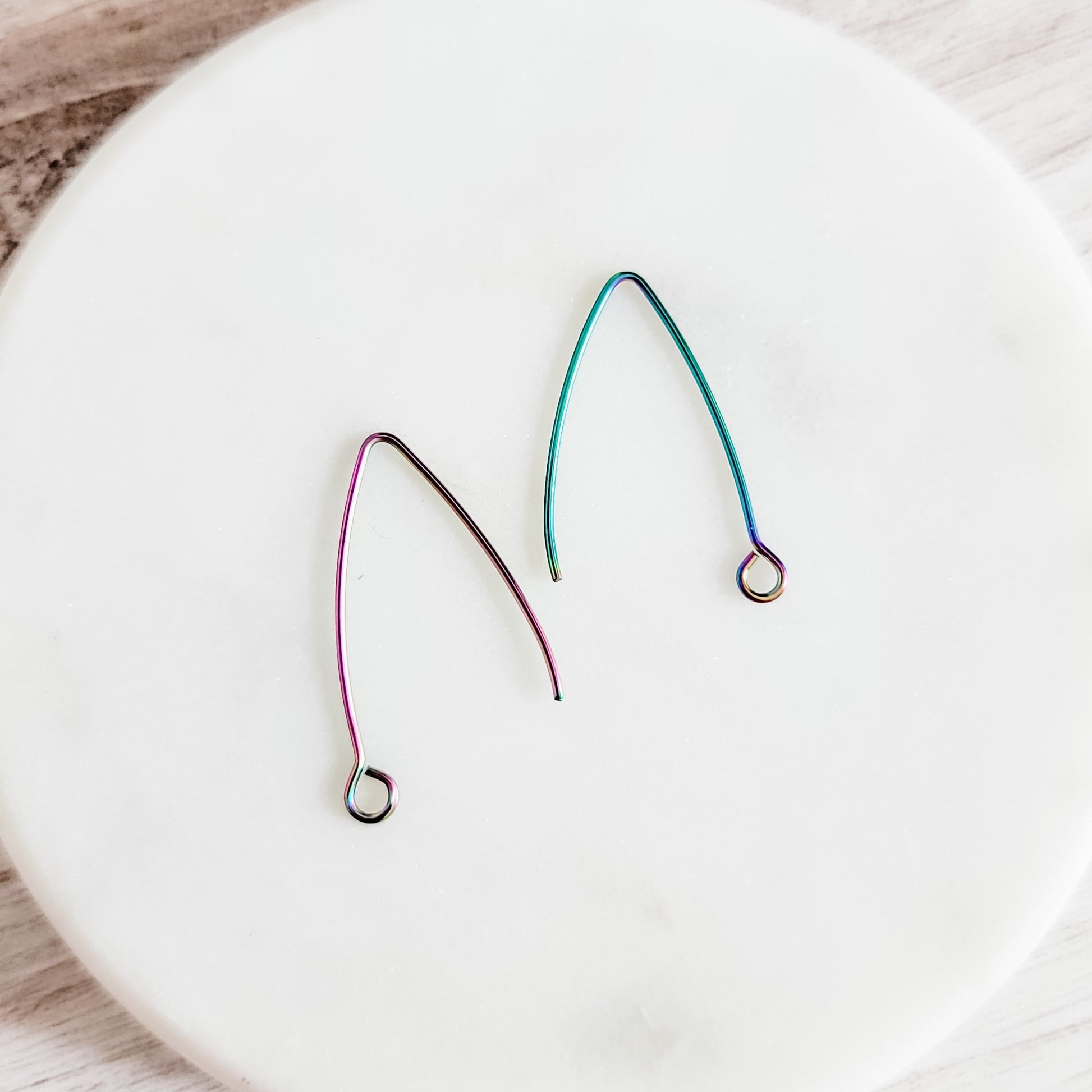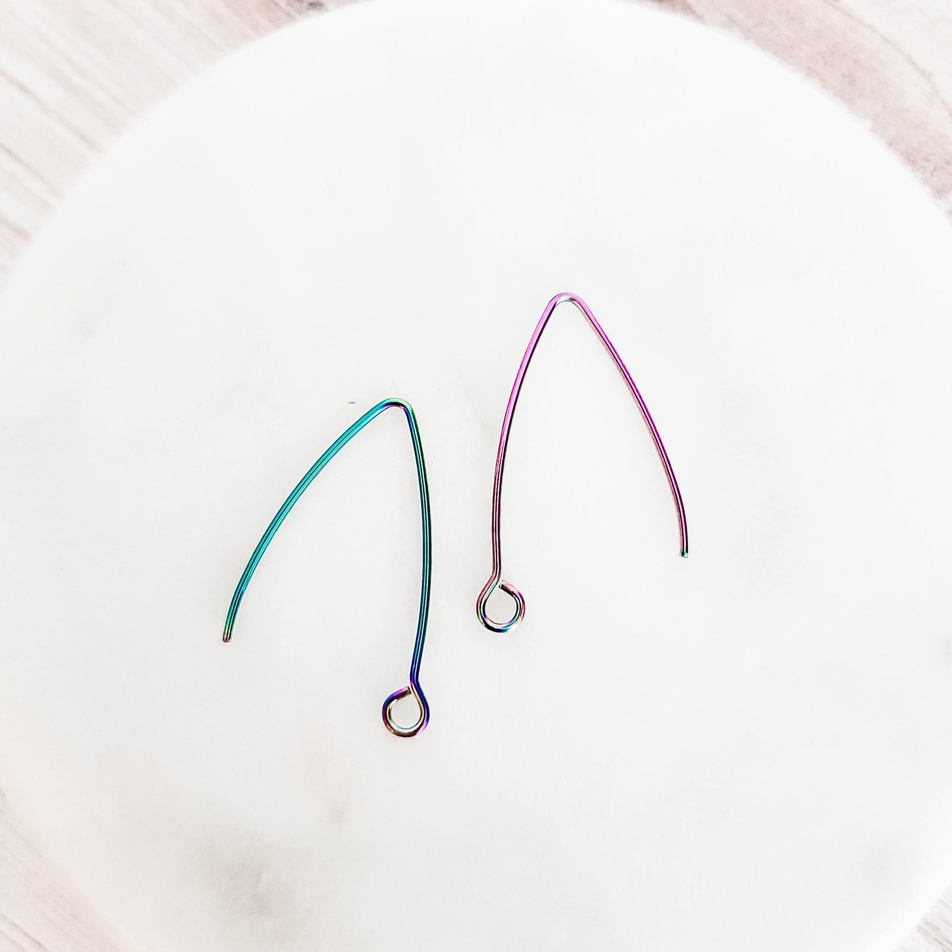 Rainbow Regular Loop Stainless Steel V Ear Wires 2.5mm Hole, 20 Pieces