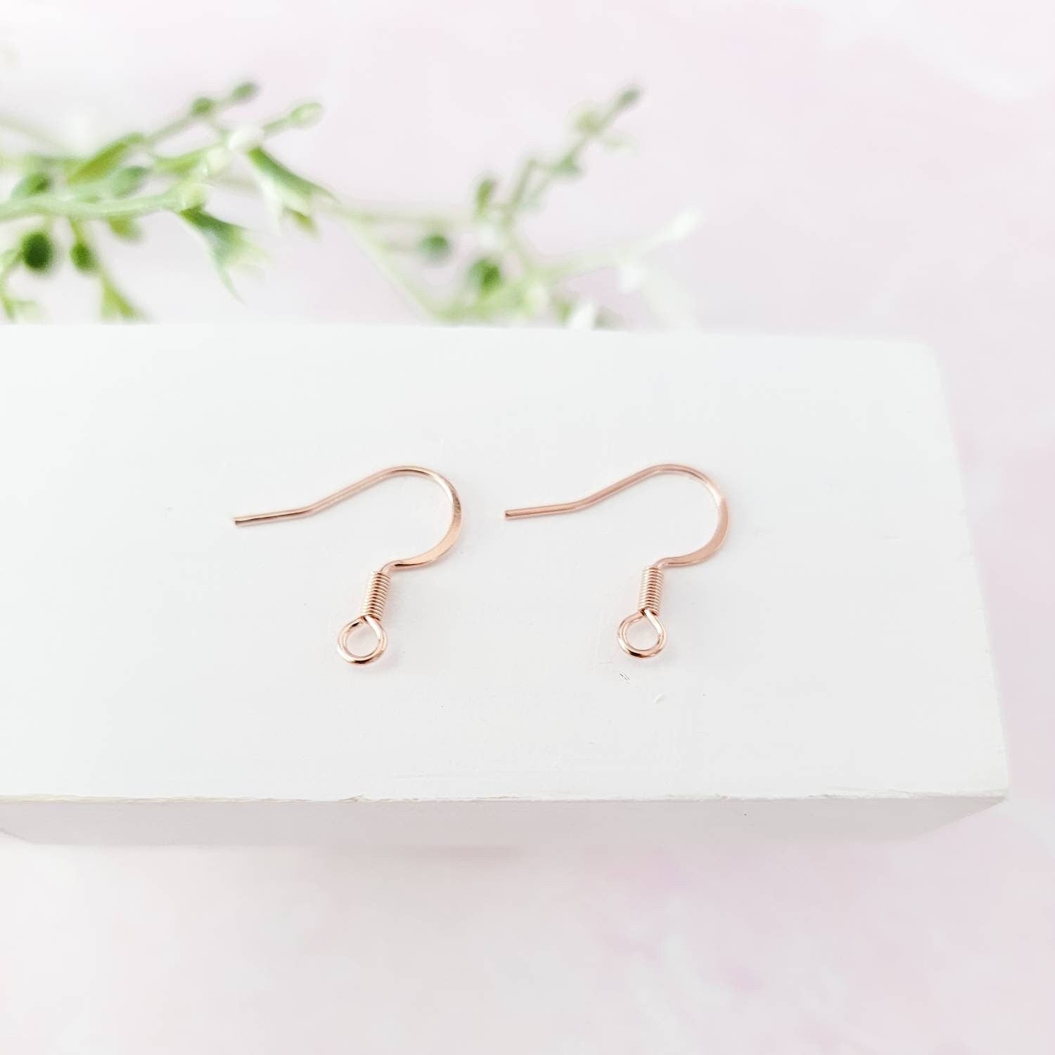 These beautiful rose gold stainless steel ear wires from Monarch Pine Craft Supply beautifully coordinate with arch connectors and other findings in the shop to create perfectly-matched and stylish earrings. Crafted from premium hypoallergenic surgical stainless steel, these are a sleek flat-French-style earring hook with a 2.5 millimeter inner loop diameter. Quantity: 10 pairs (20 pieces)
