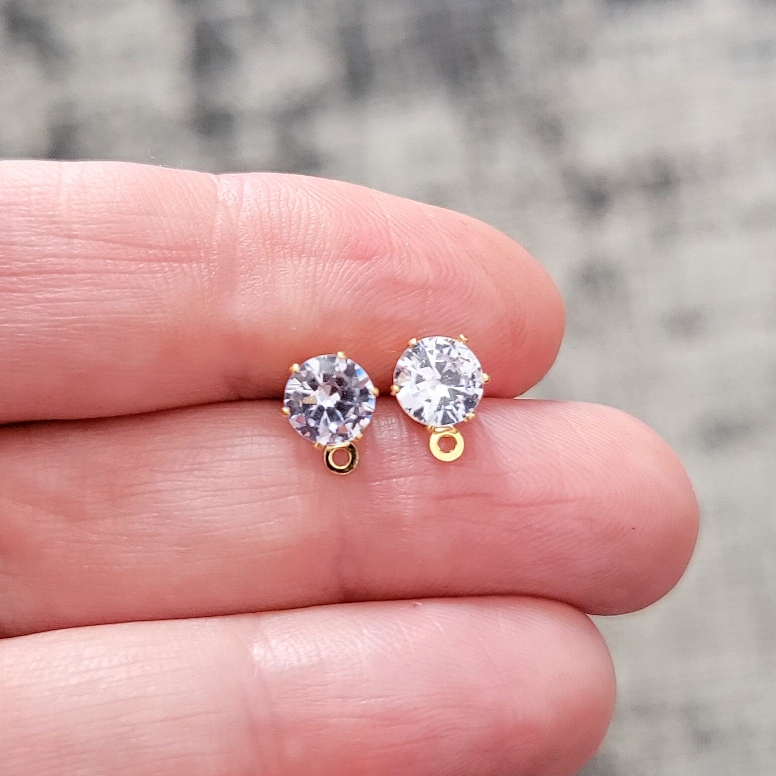 Round 6mm Cubic Zirconia Gold Studs with Loops, 10 Pieces