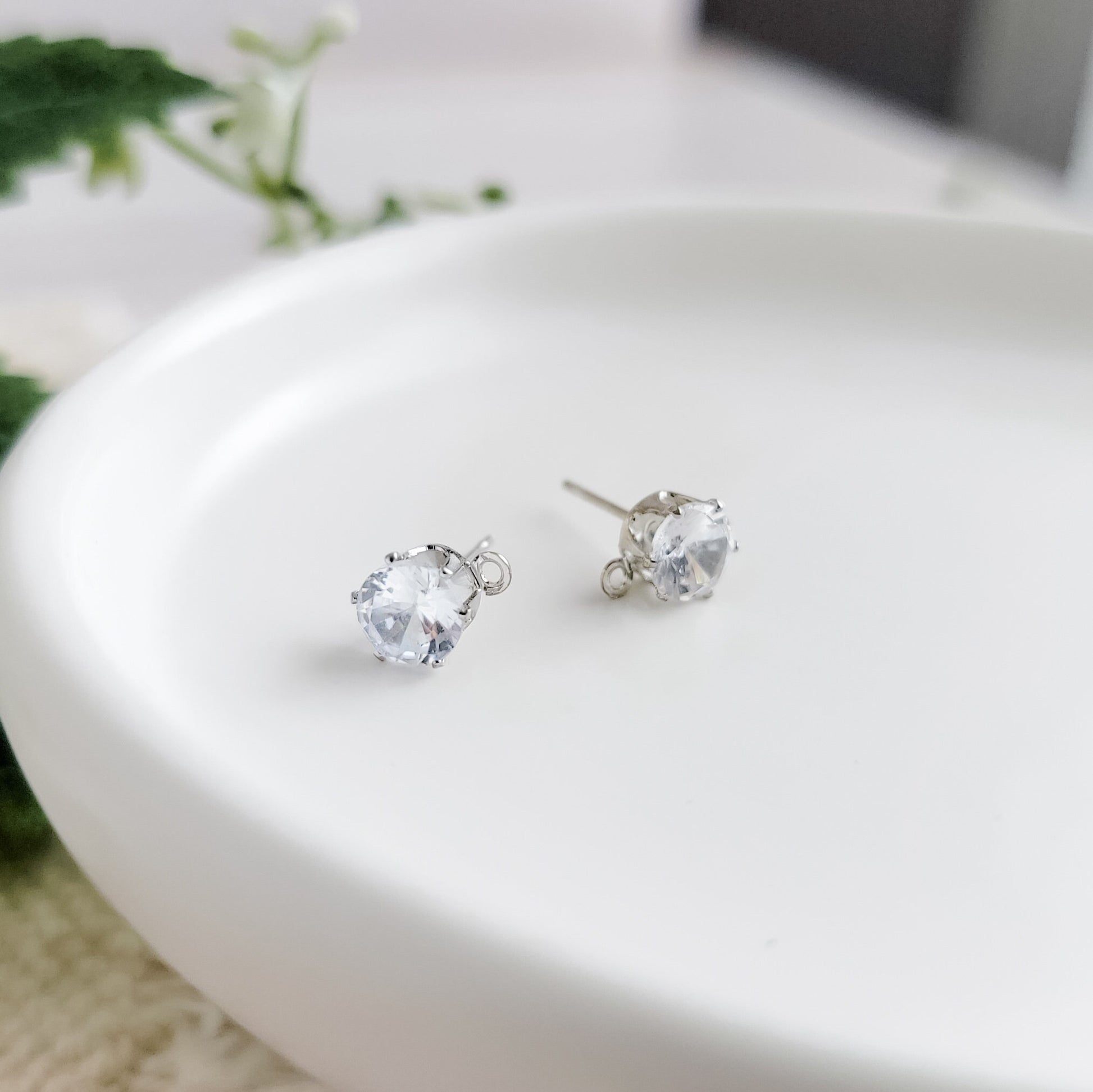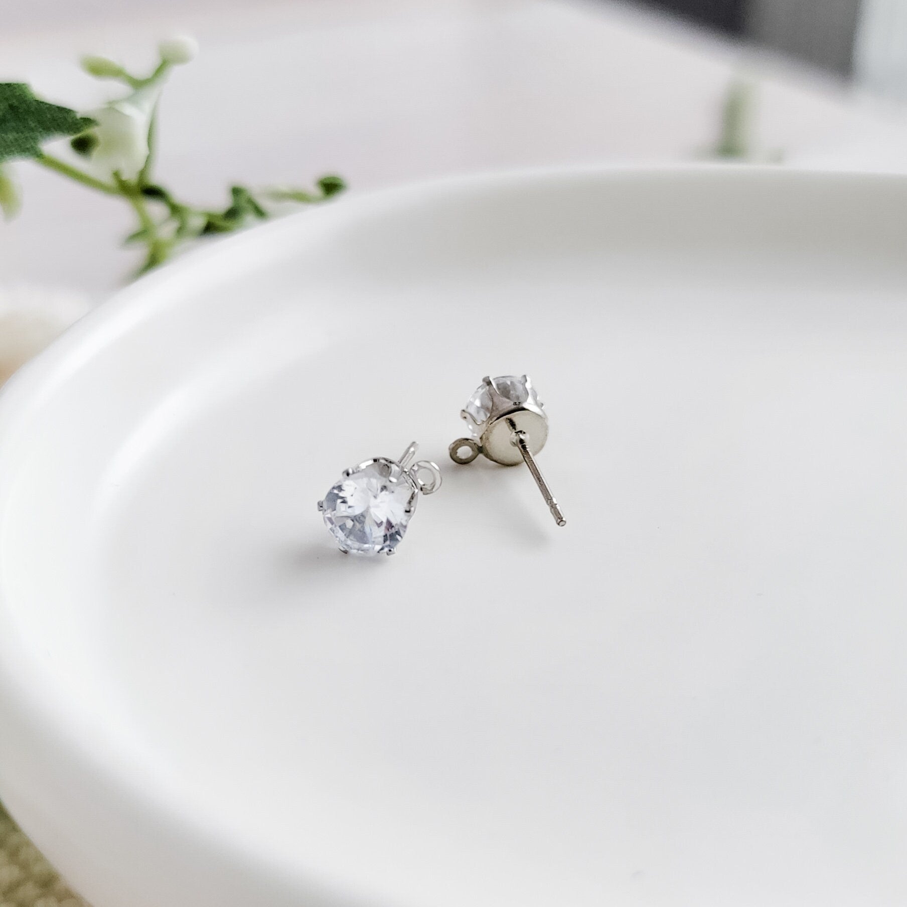 Round 6mm Cubic Zirconia Silver Studs with Loops, 10 Pieces