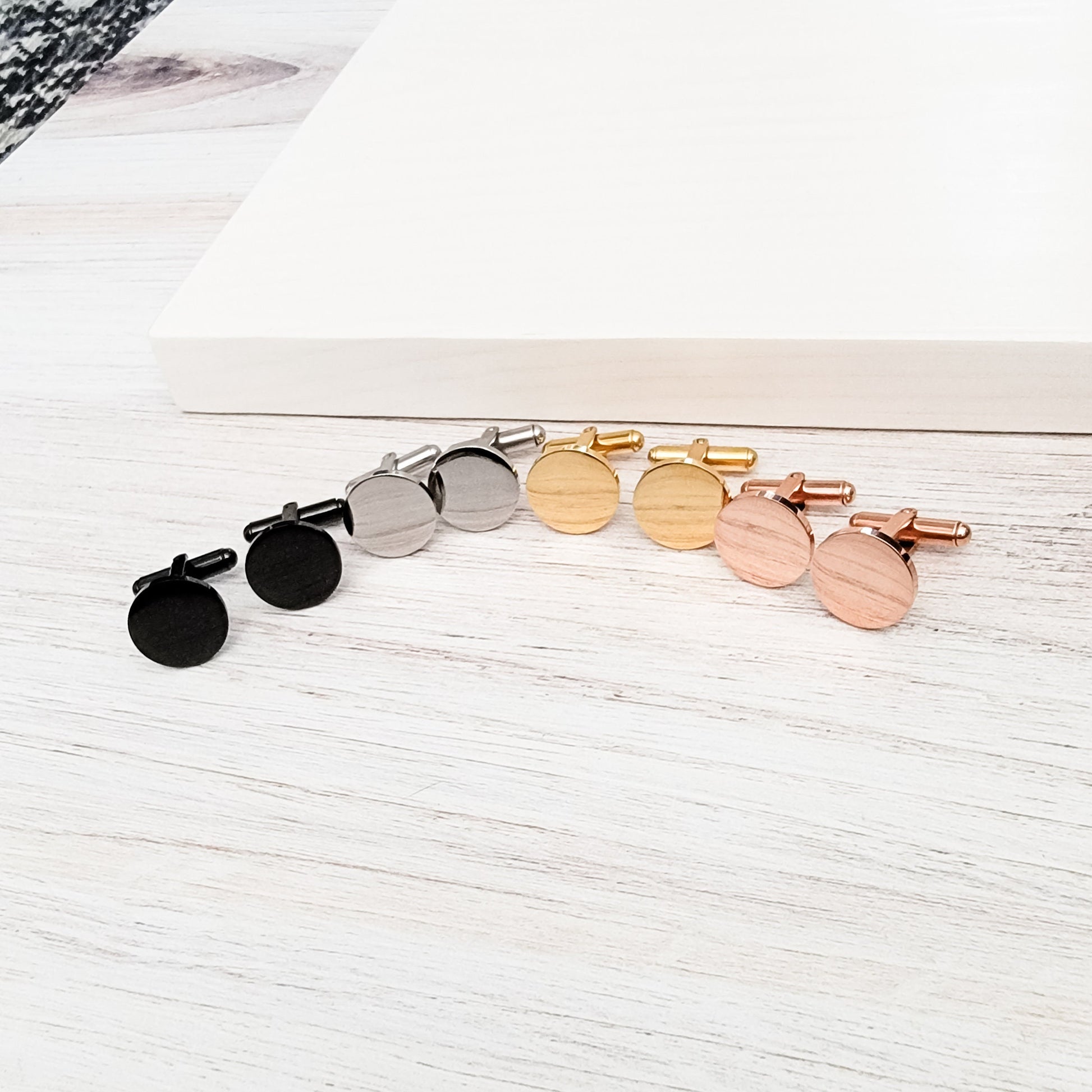 Round Cufflinks (Choice of Color), 1 Pair Total, Metal Blank #12