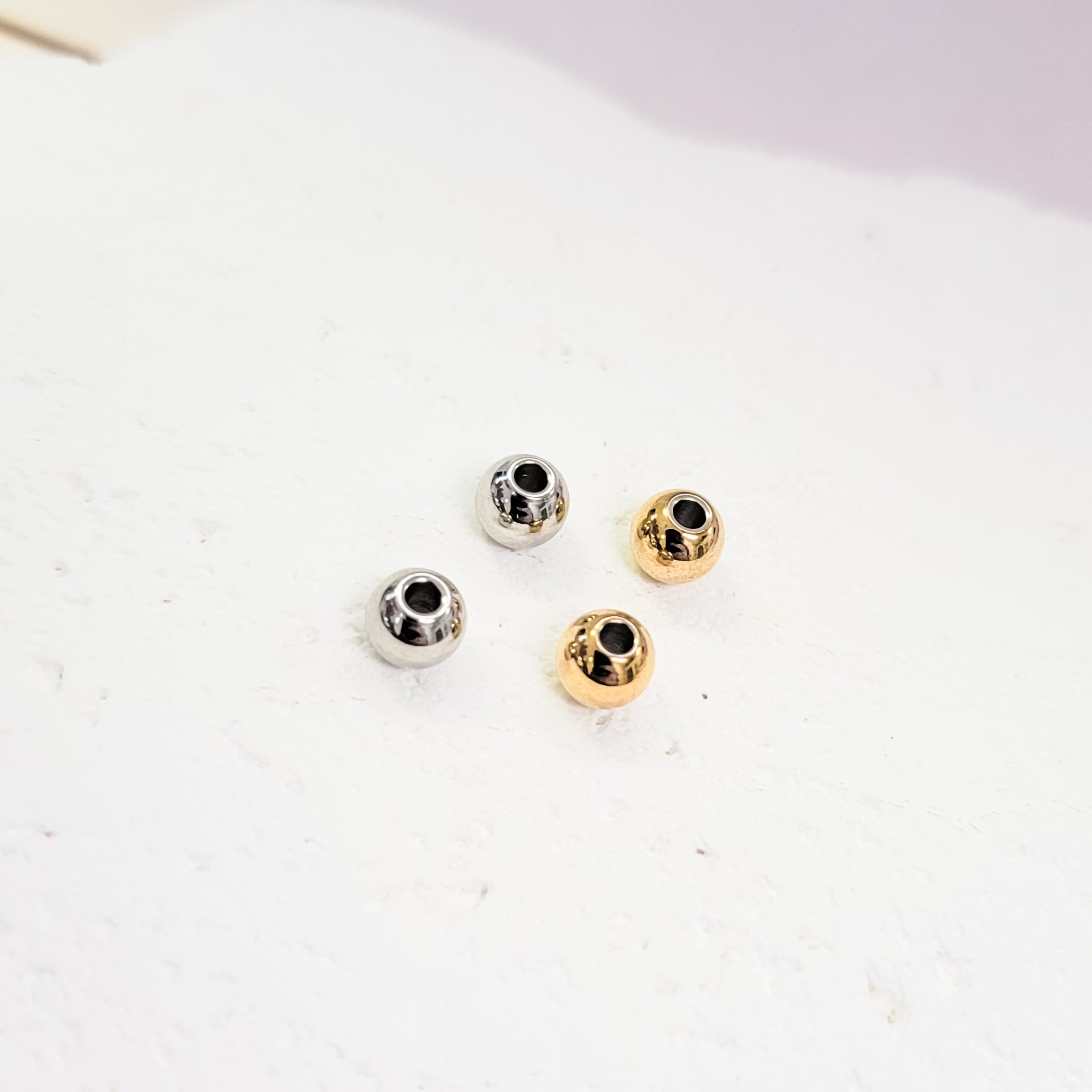 • Size: Select a diameter of roughly 4mm, 5mm, or 6mm; hole size is roughly 1.8; usage note: these will slide over our minimalist chains but not over extenders (extenders will need to be removed, beads put on, then extenders reattached with a jump ring)