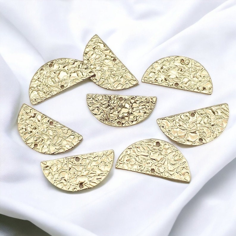 Brass Hammered Semicircle 2-Hole Connectors, 10 Pieces