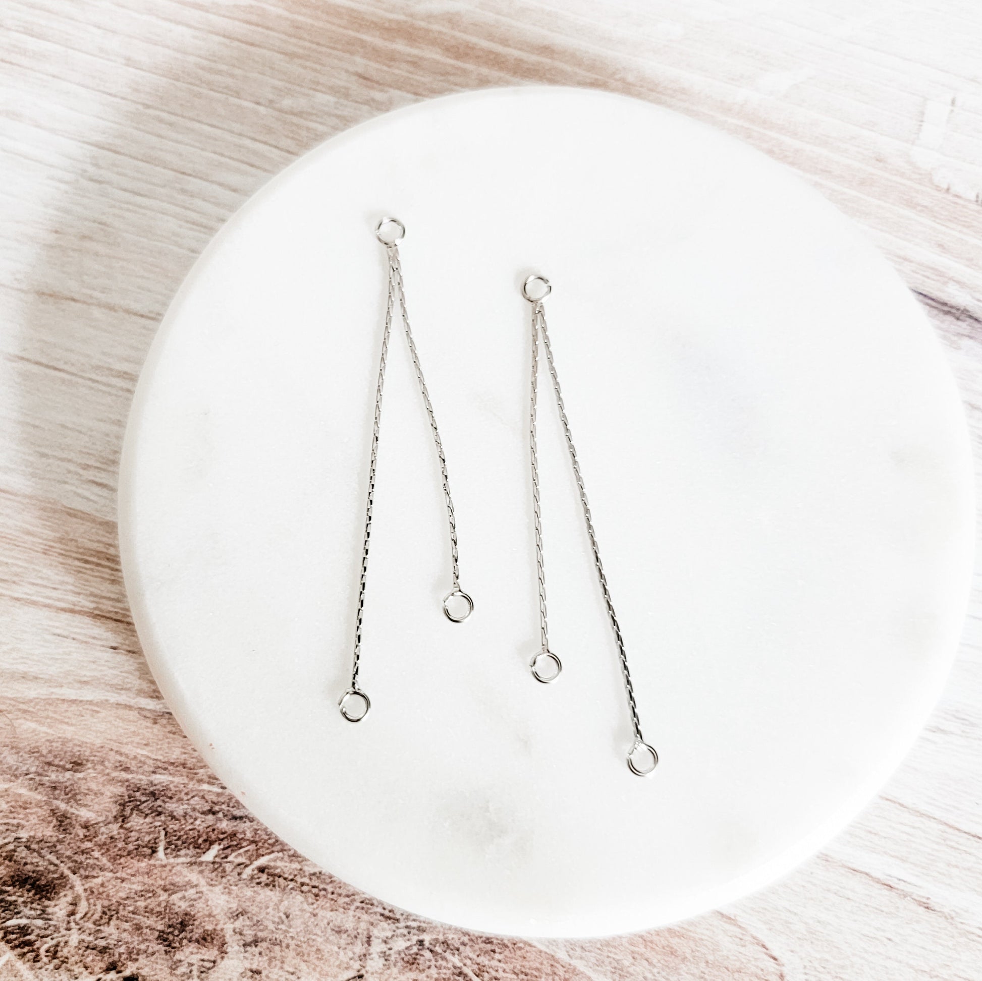 Silver Brass Two-Chain Connector With Loops, 10 Pieces