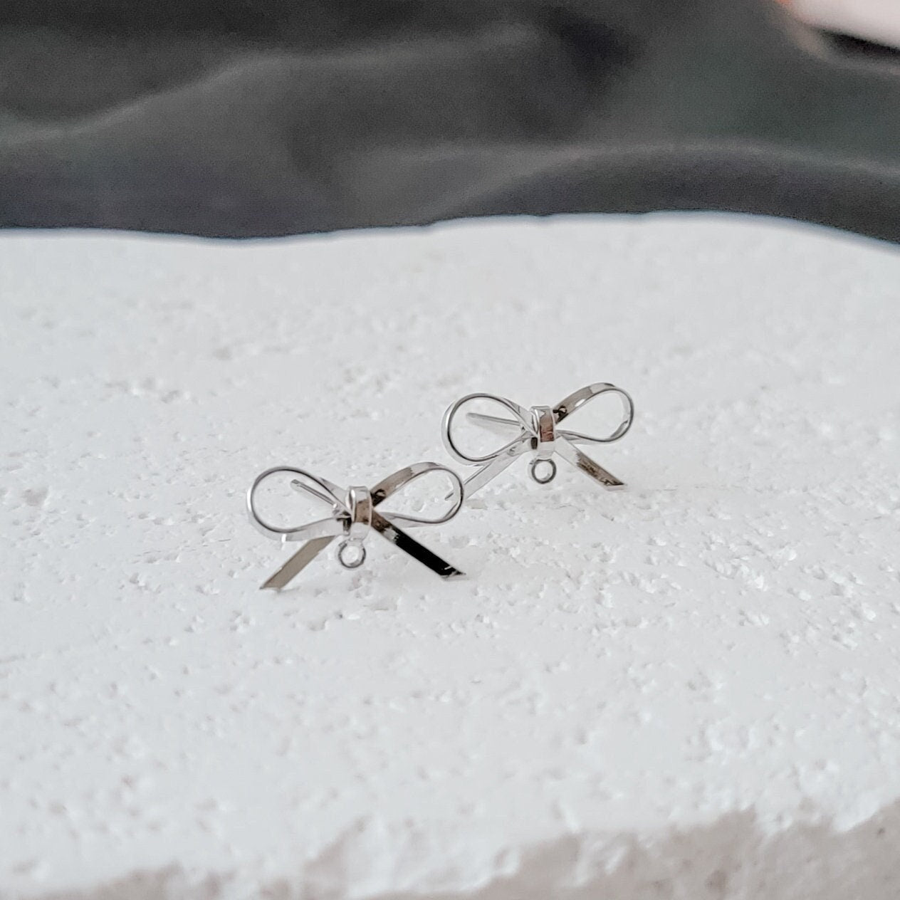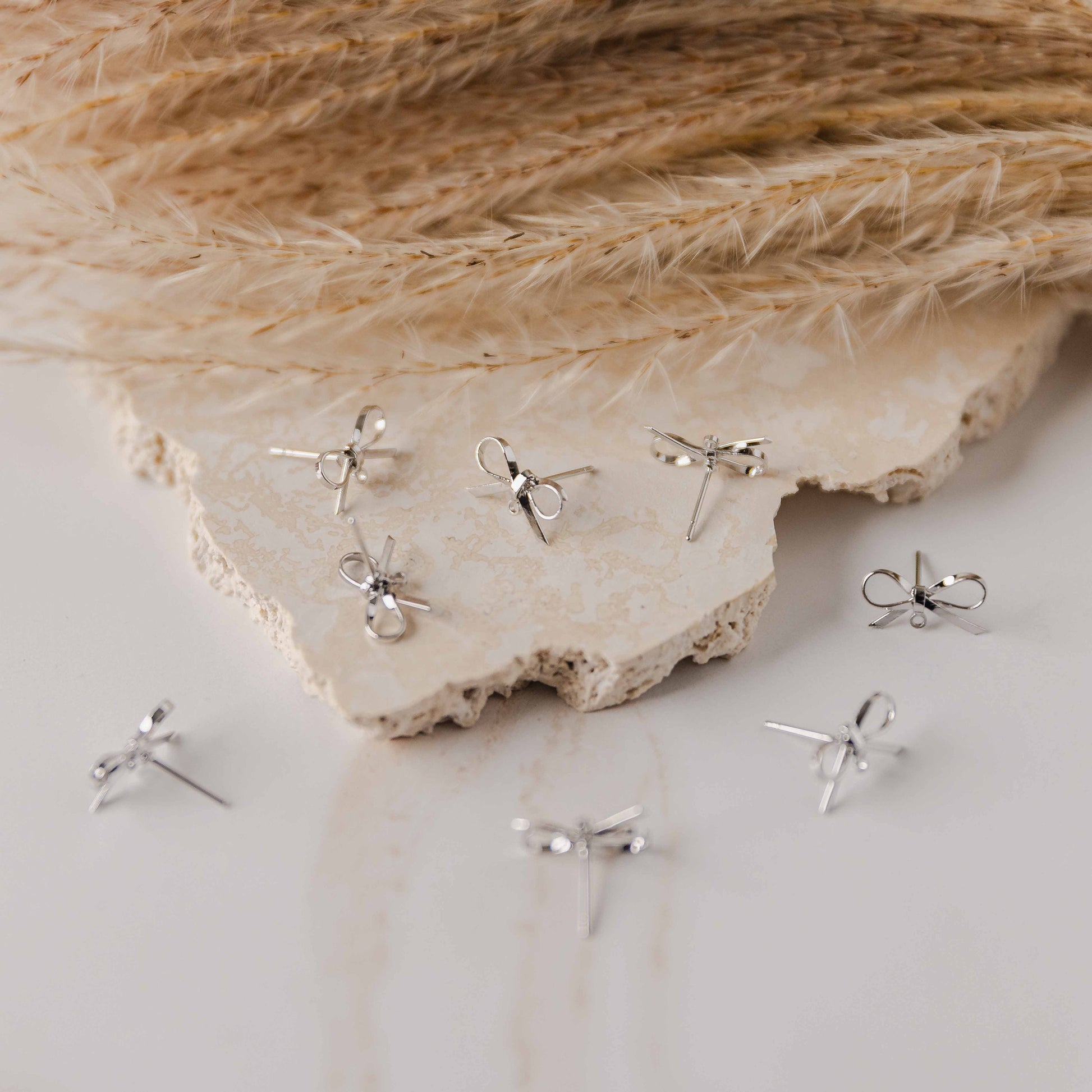 Silver Elegant Sterling Silver Bow Stud Connector, 10 Pieces, Bow #43