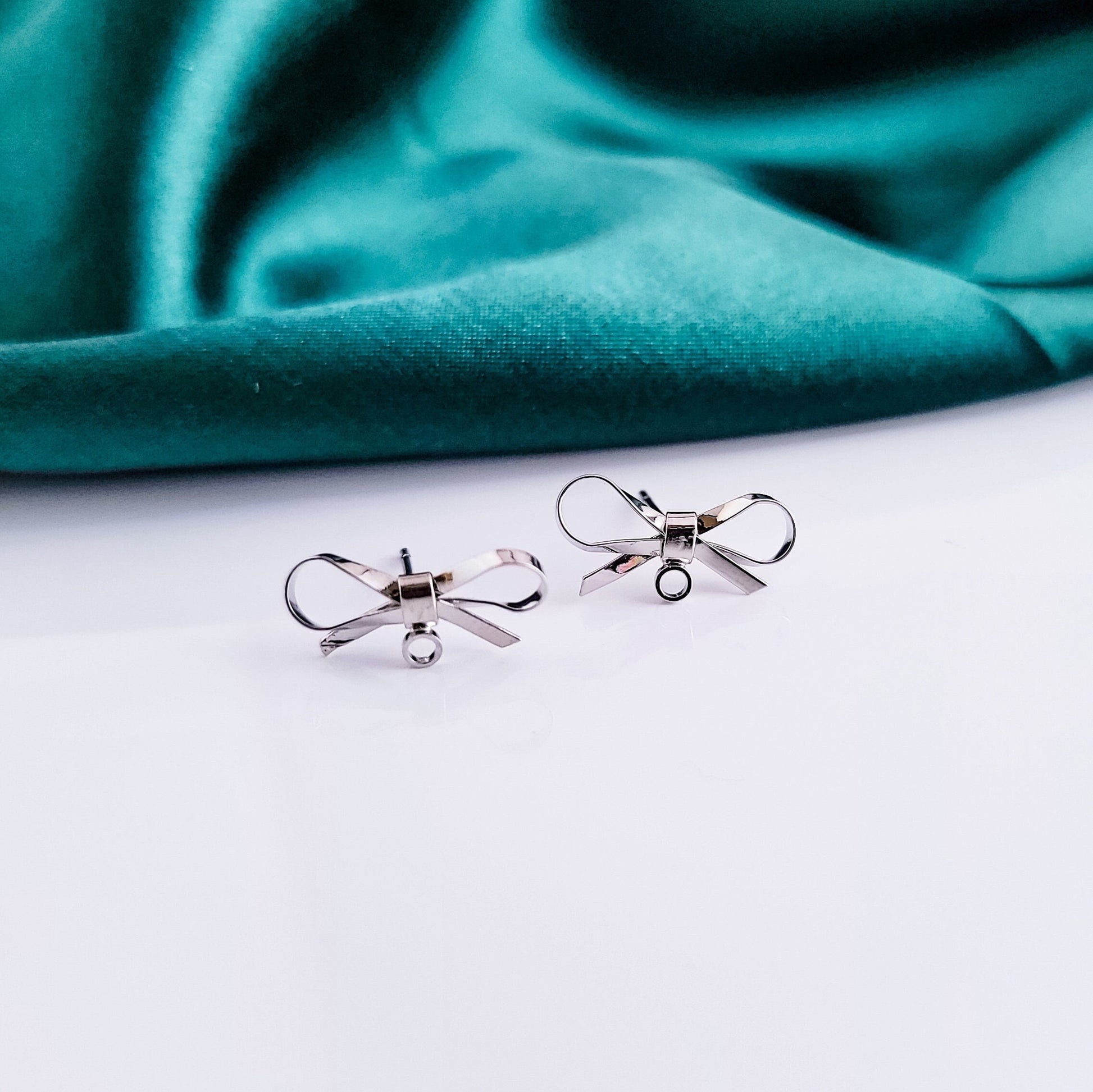 Silver Elegant Stainless Steel Bow Stud Connector,10 Pieces, Bow #47