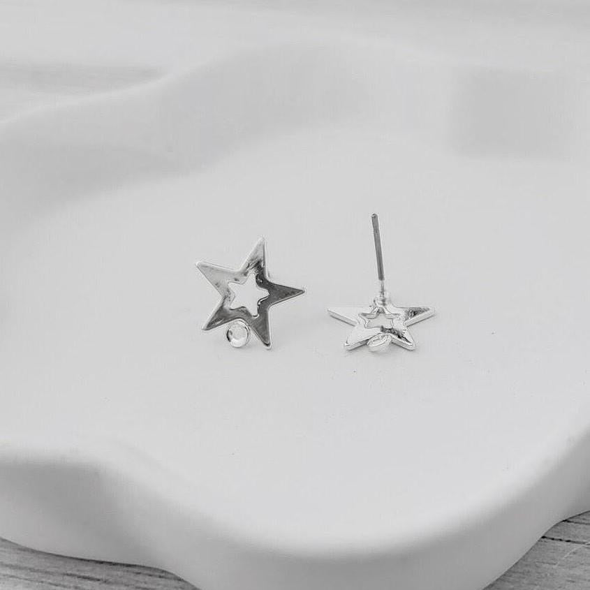 Silver Open Star Stud Earring Findings, 10 Pieces
