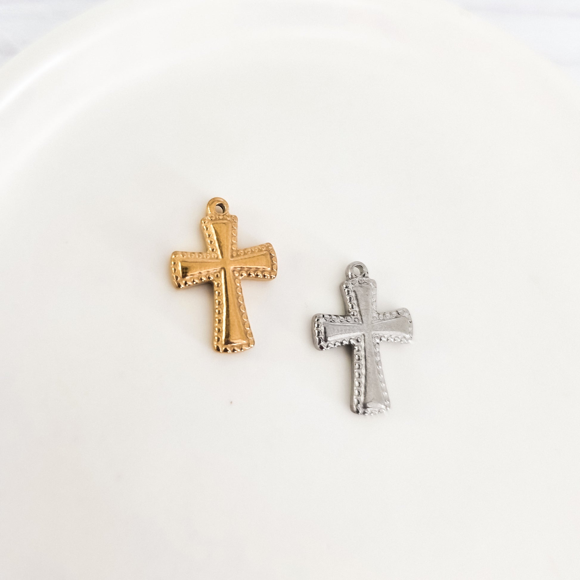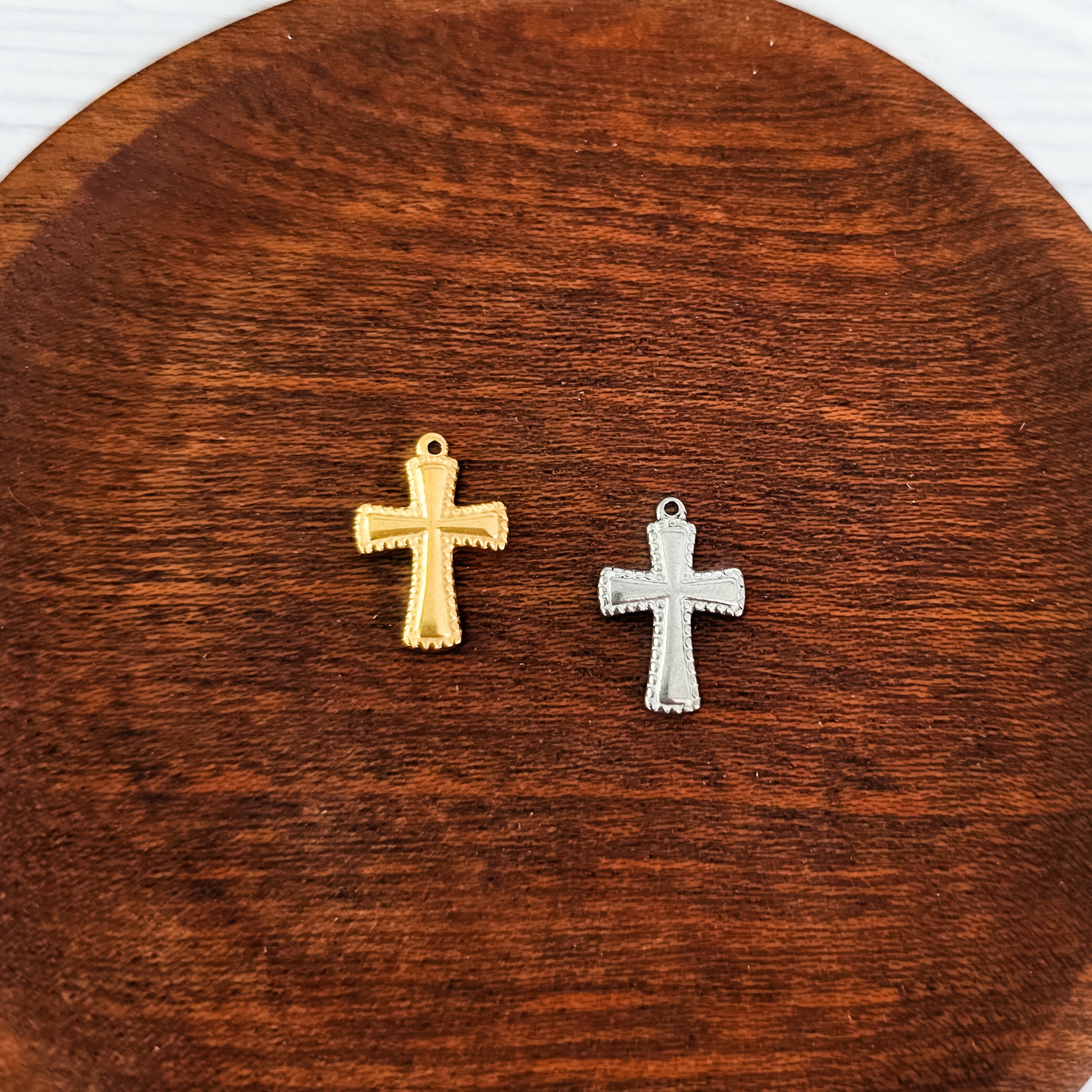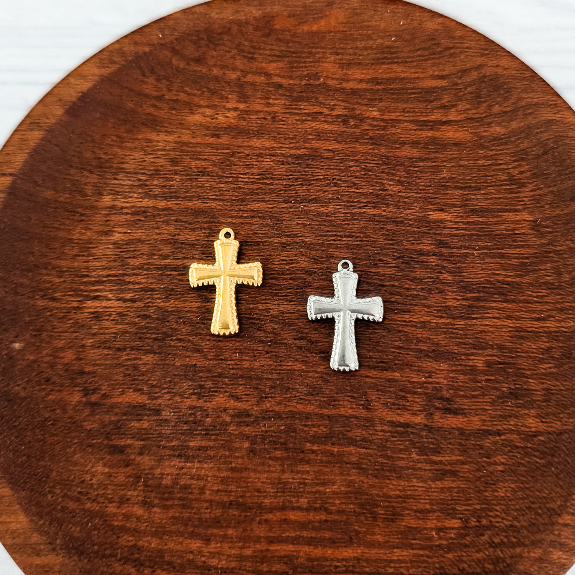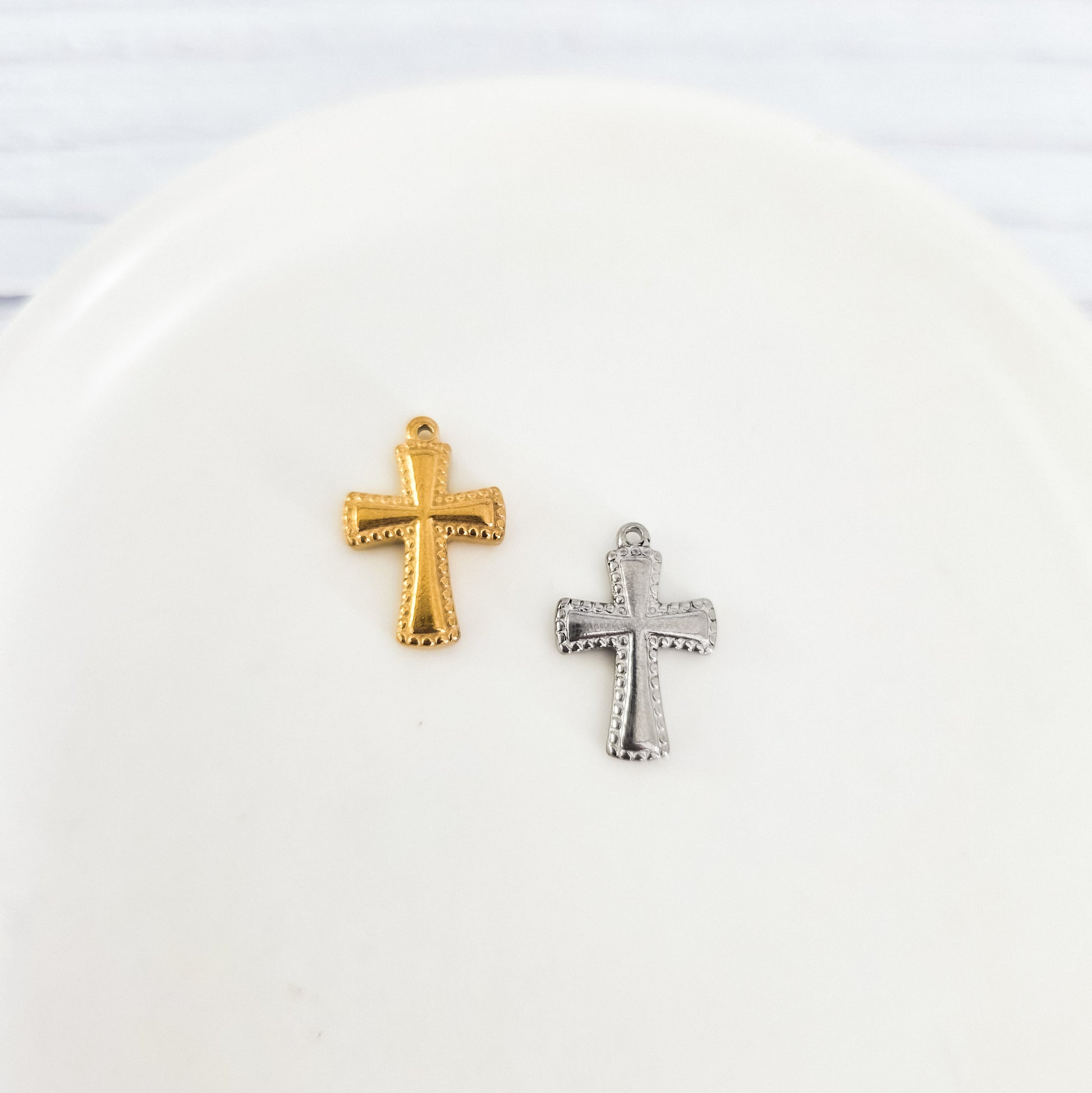 Small Cross Stainless Steel Charm (Silver or Gold), 10 Pieces, Charm #4