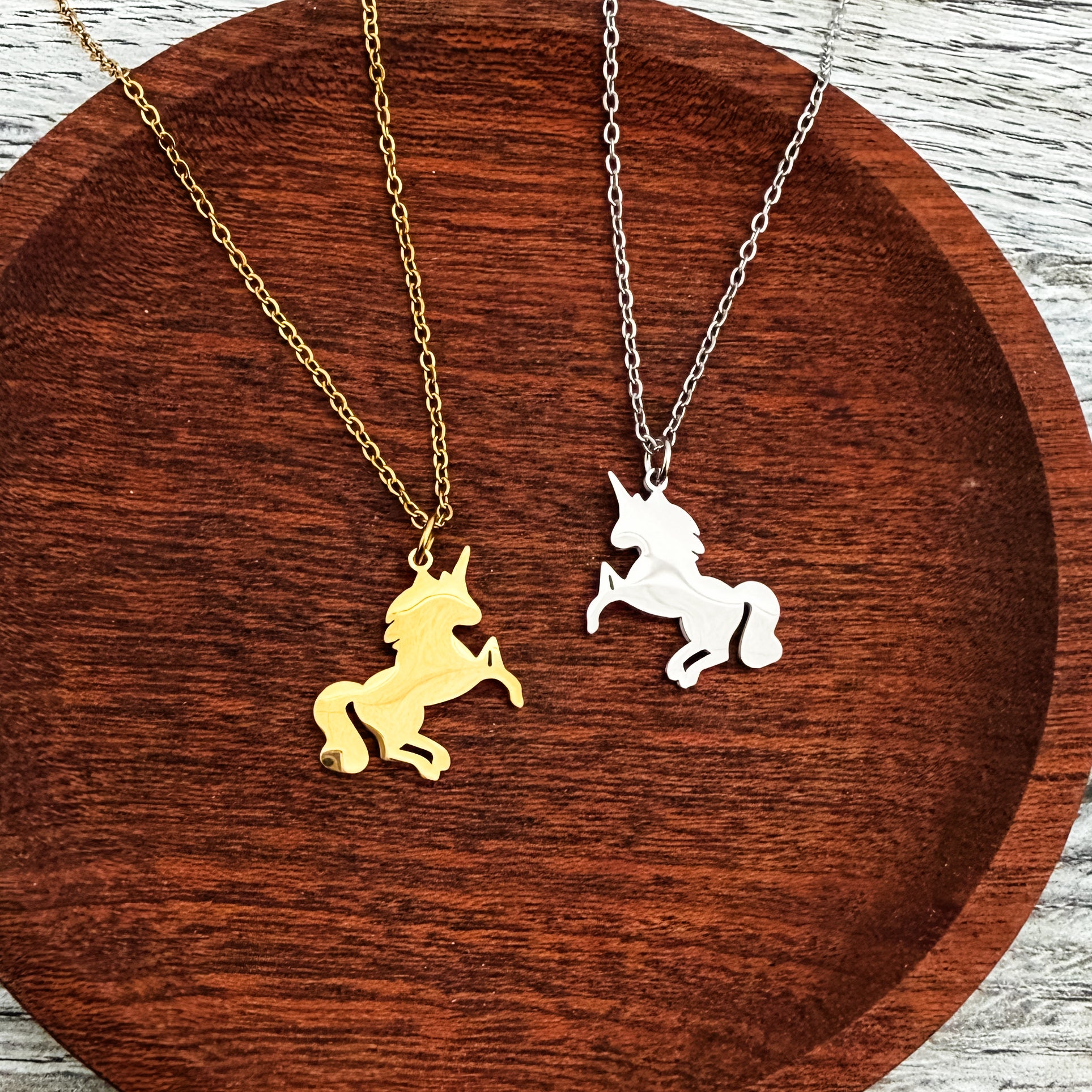 Unicorn Pendant Necklace (Silver or Gold), 1 Total, Metal Blank #264