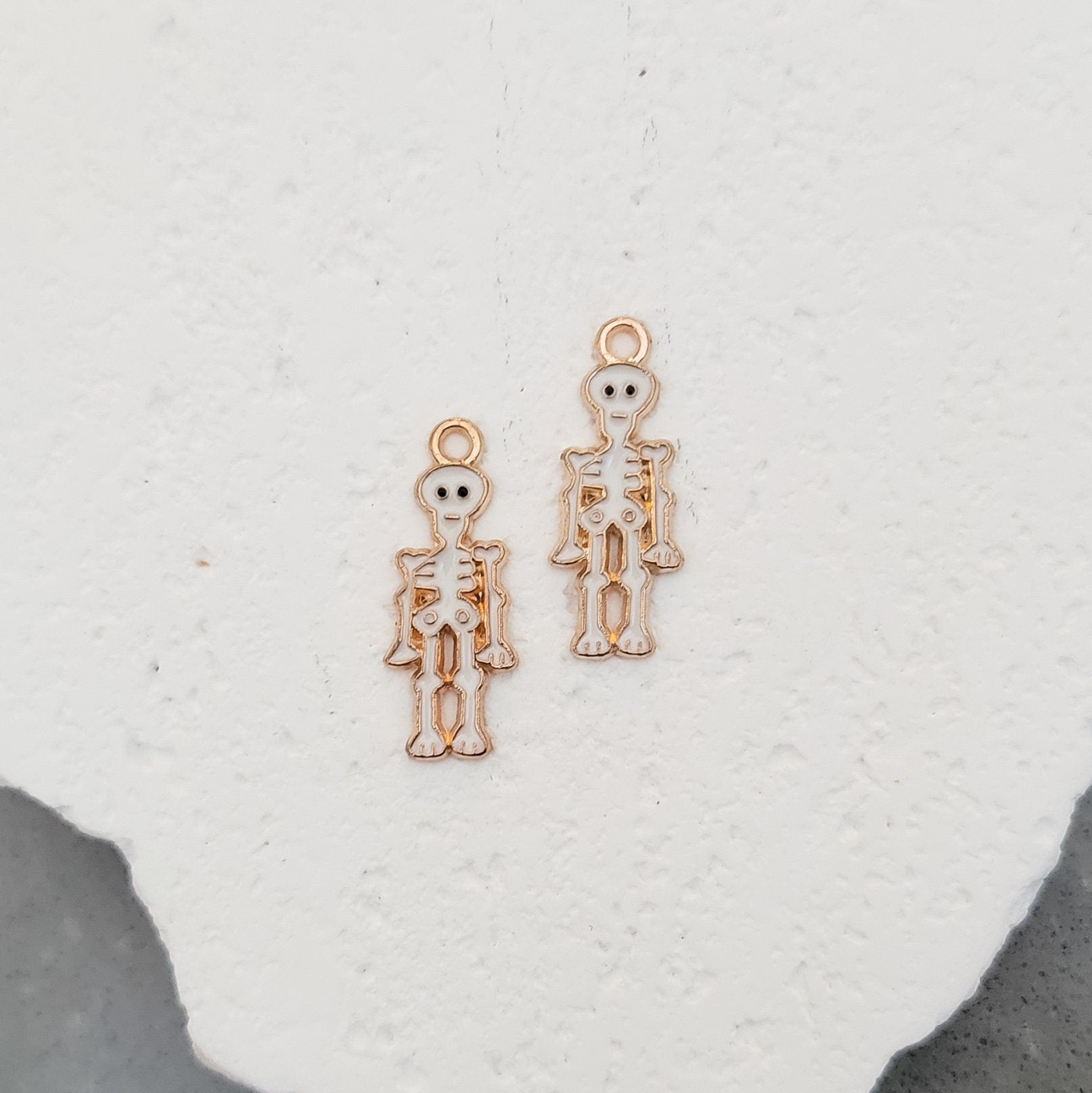 Skeleton (White and Gold) Enamel and Alloy Pendant Charm, 10 Pieces