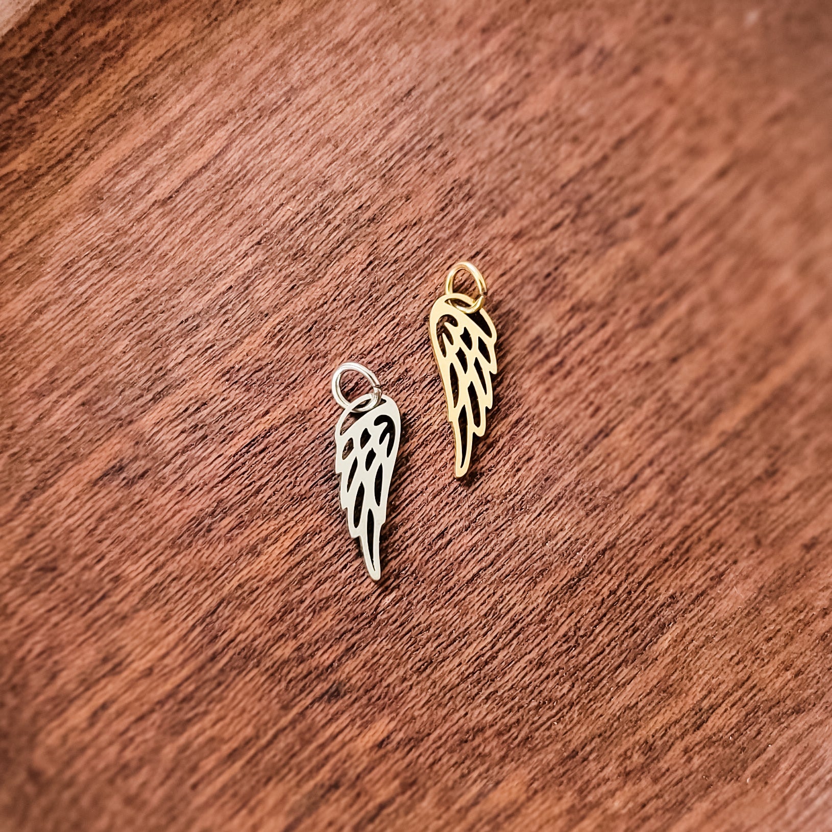 Wing Charms with Attached Jump Rings (Silver or Gold), 5 Total, Metal Blank #176