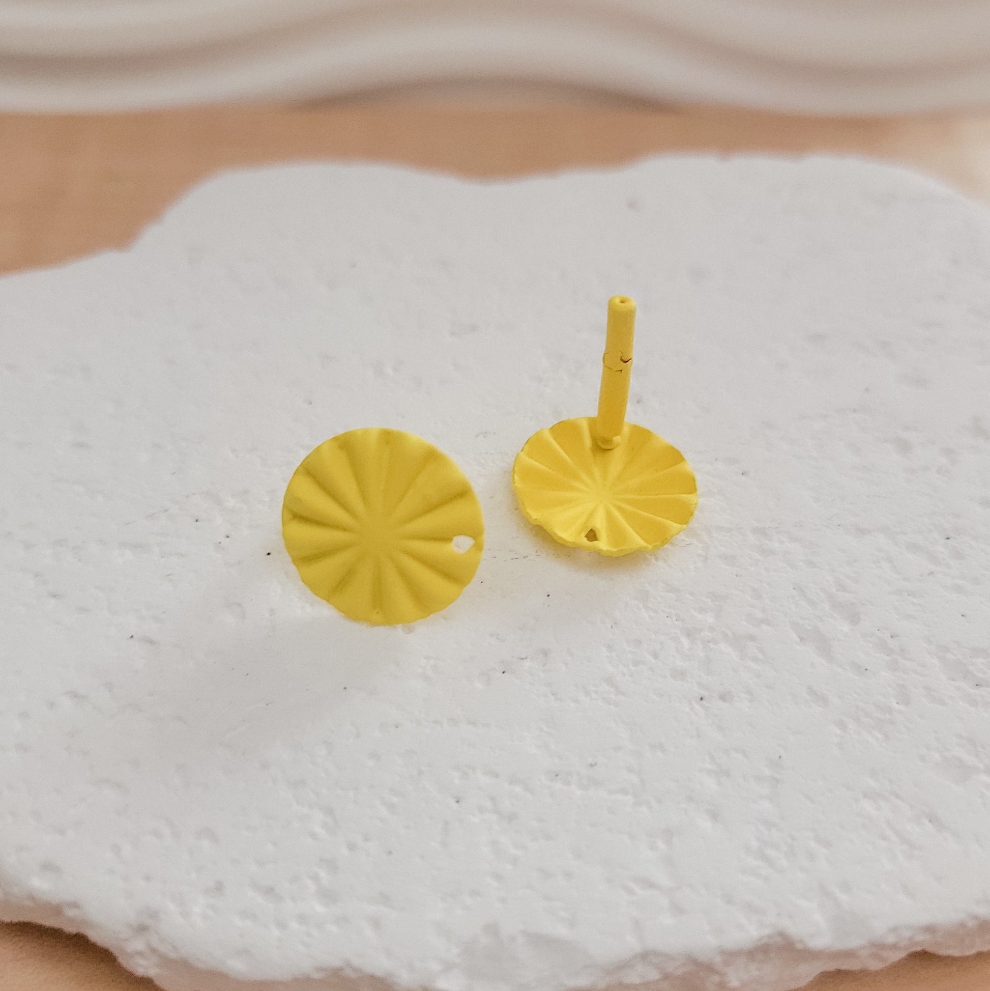 YELLOW Starburst Circle Stud Connectors (17 mm), Round Post Earring Connector, One Hole Circle Stainless Steel Post Finding